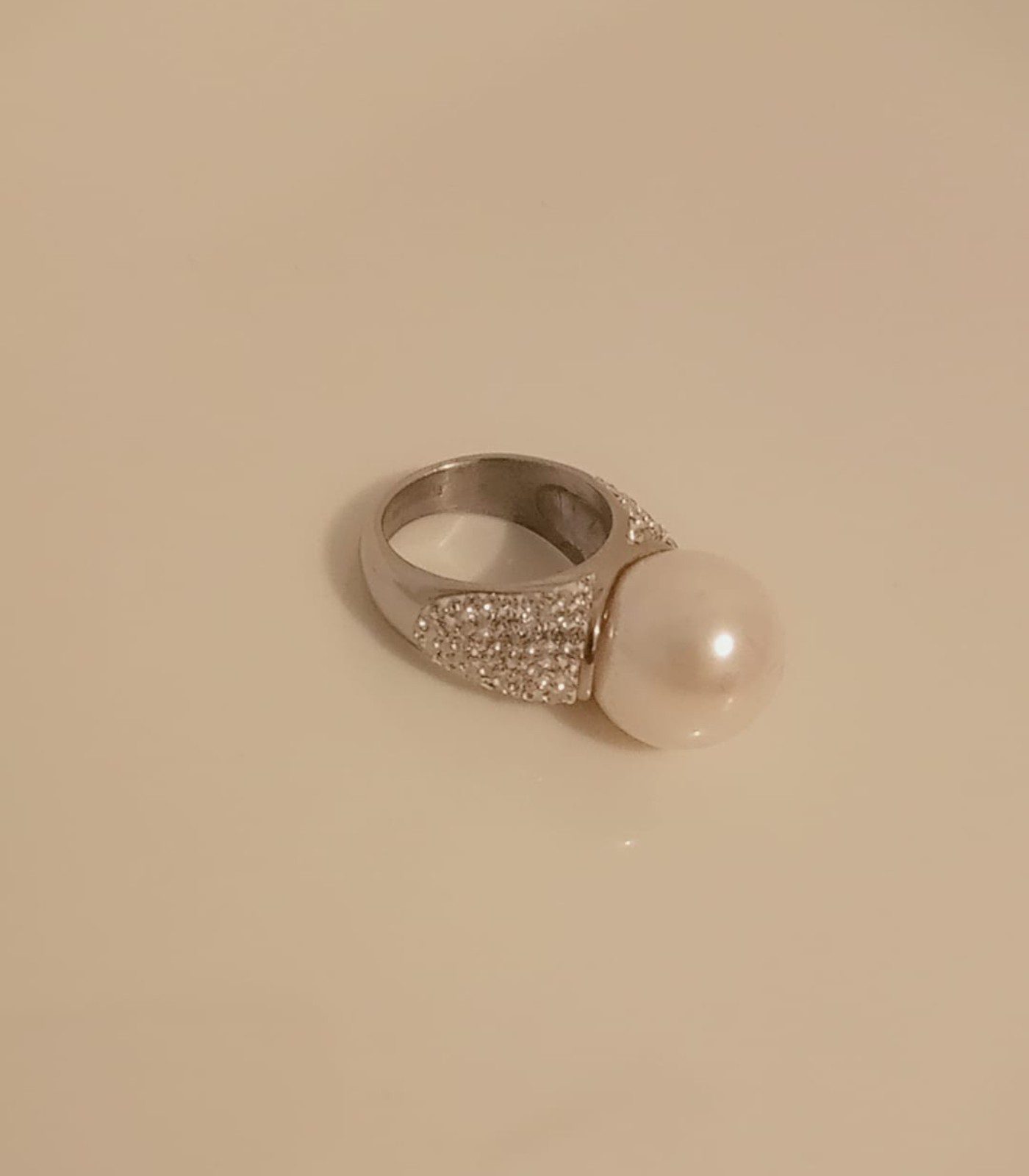 bague en argent avec perle et strass.
