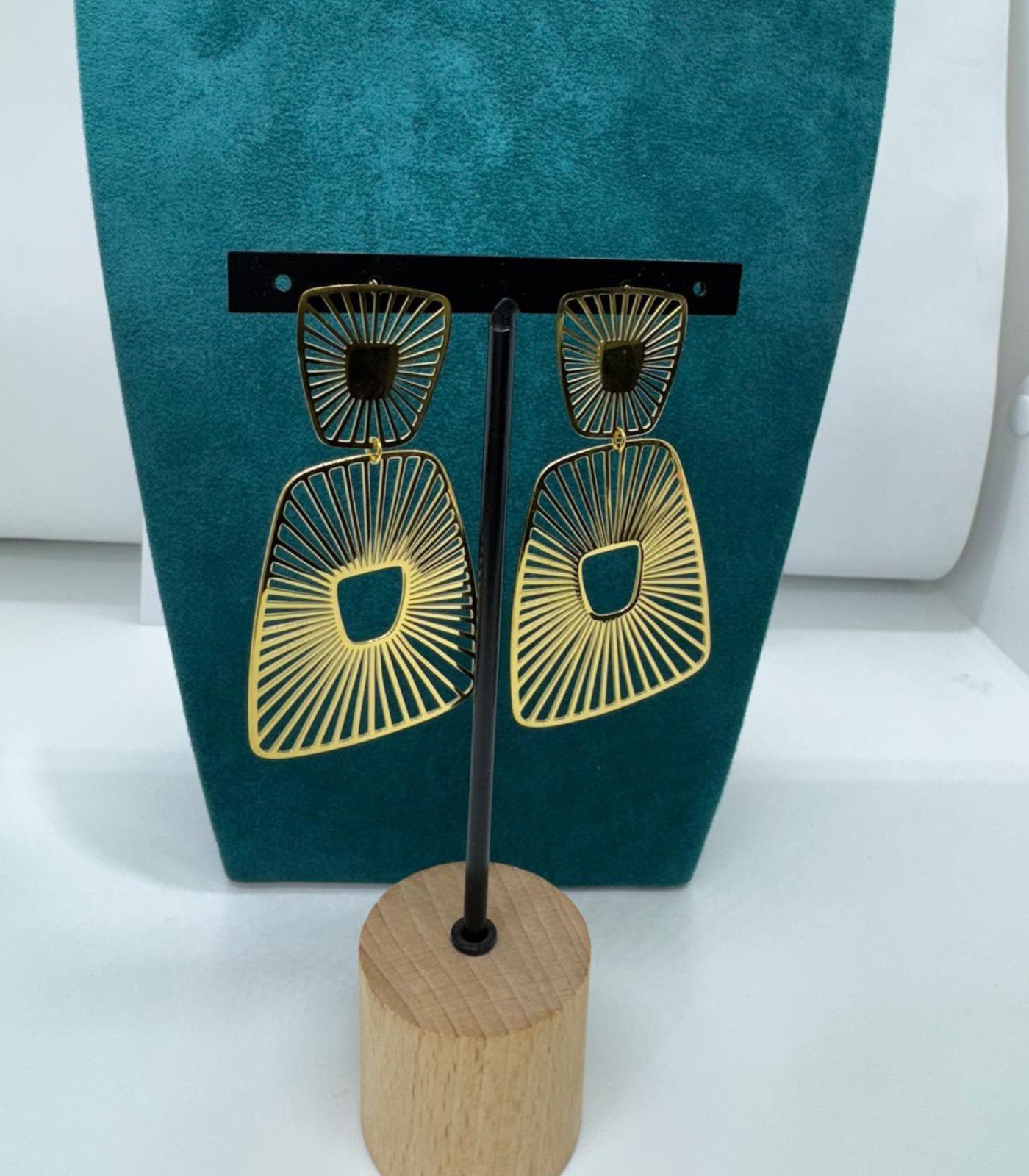 Que vous les choisissiez pour compléter une tenue de travail ou pour une soirée, ces boucles d’oreilles carrées ajoutent une touche chic et moderne à votre look.