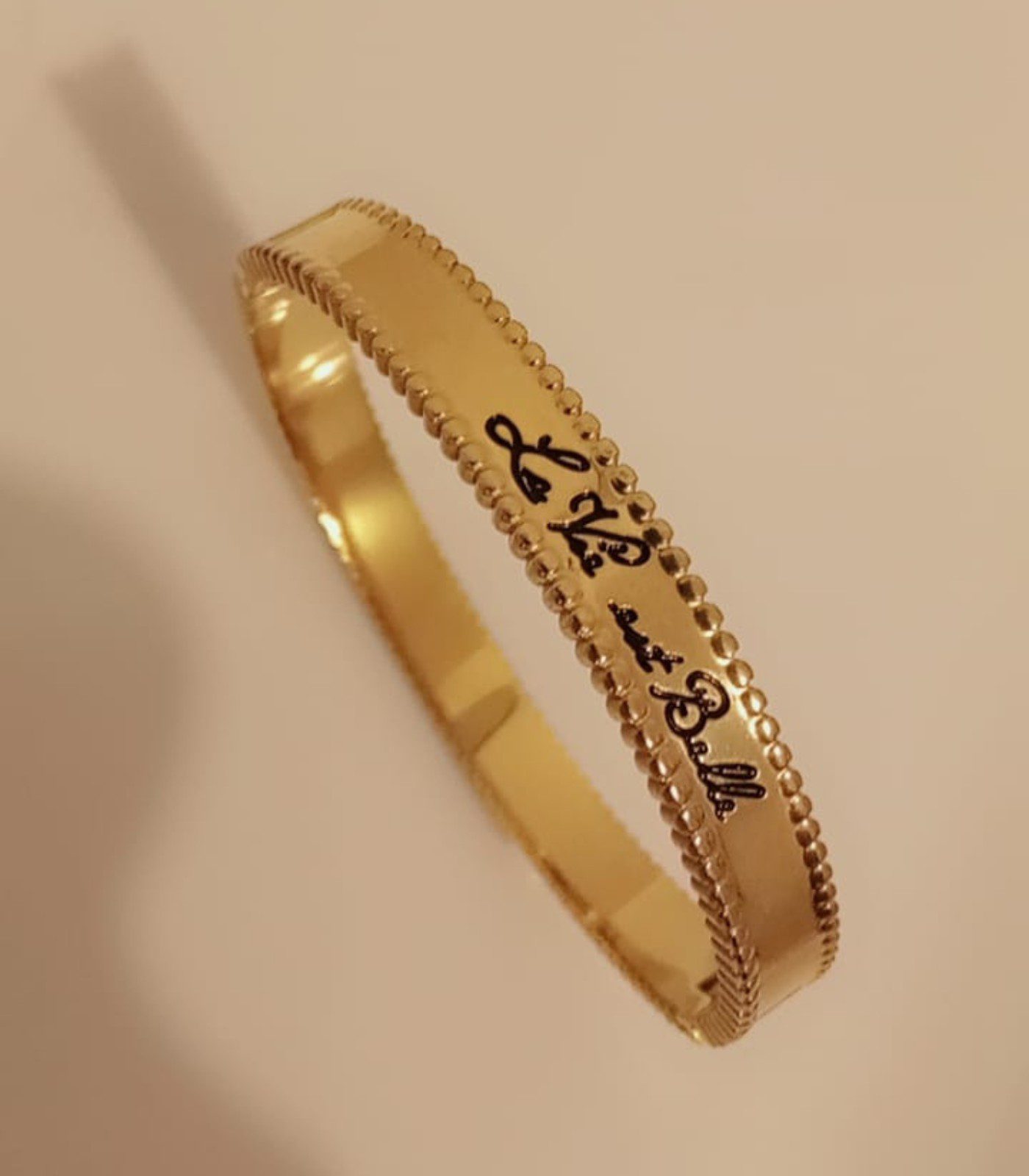 Fabriqué en acier inoxydable de haute qualité, ce bracelet est à la fois robuste et léger. Il résiste à l’eau et aux rayures, tout en conservant son éclat et sa beauté au fil du temps. Grâce à sa finition brillante et sa silhouette intemporelle, ce bracelet devient un essentiel de votre collection de bijoux.