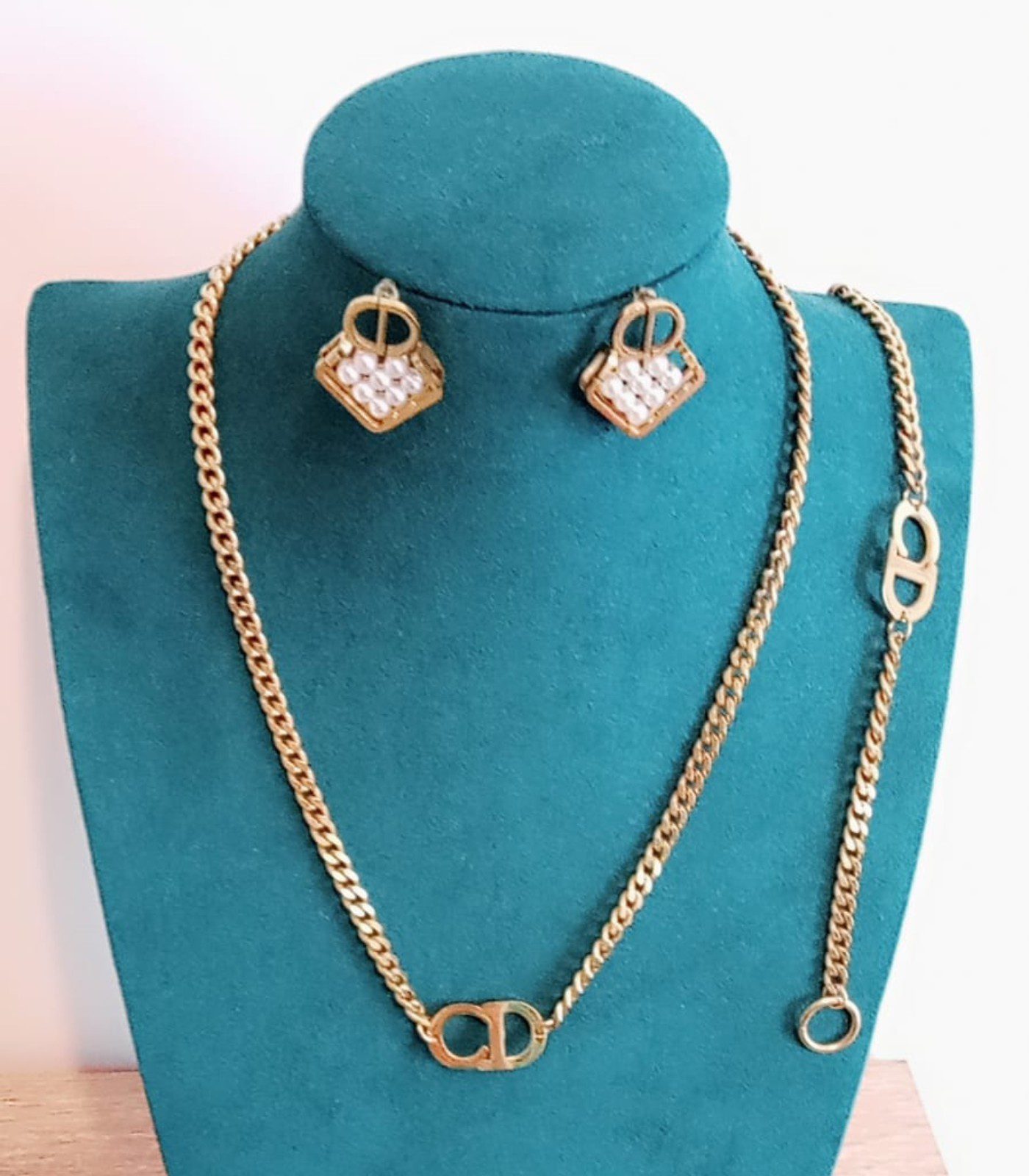 Parure avec les lettres CD en trois pièces en acier inoxydable.