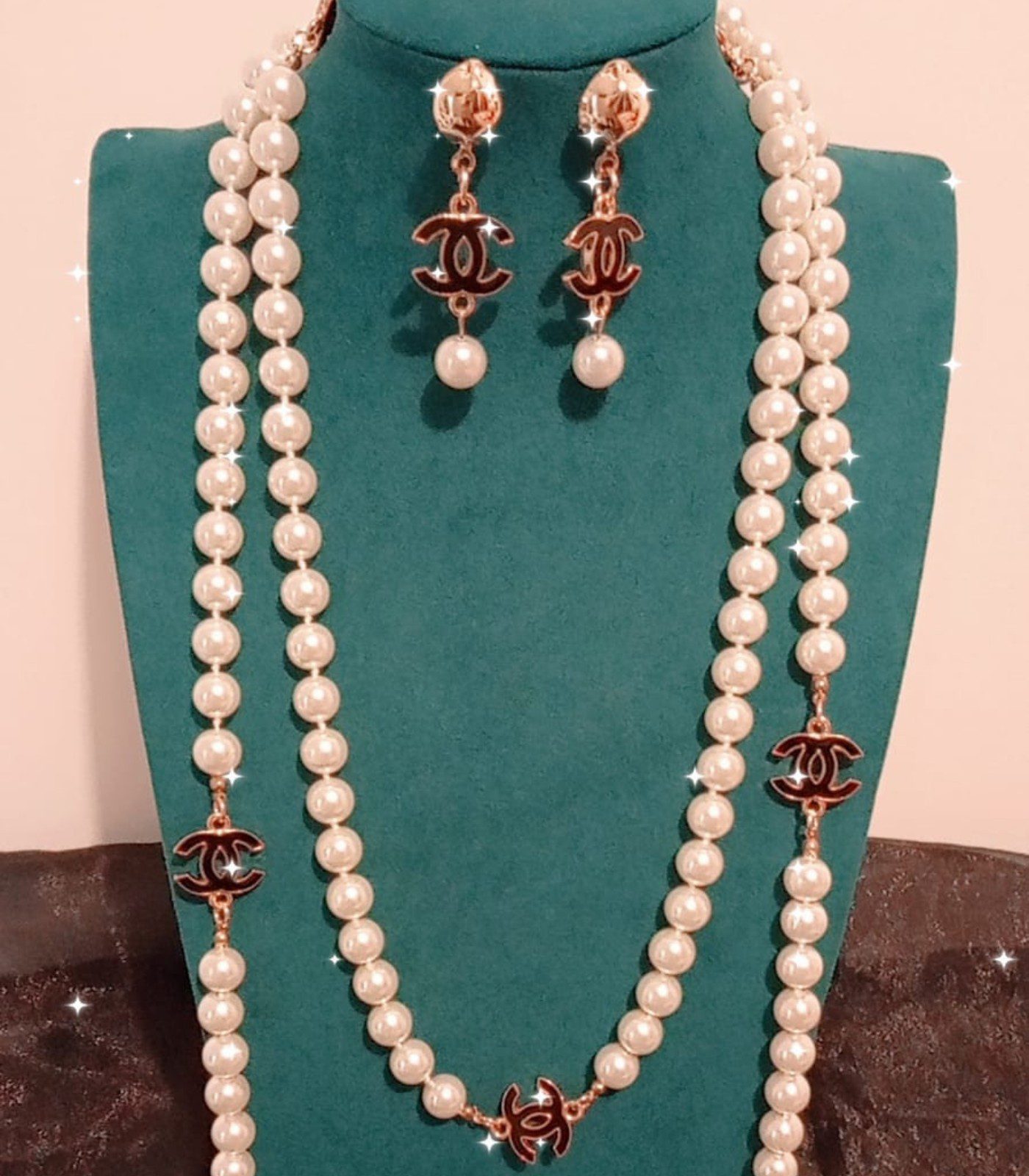 Sautoir perles chanel avec boucles en acier inoxydable – Raffiné, intemporel et résistant à l’eau.