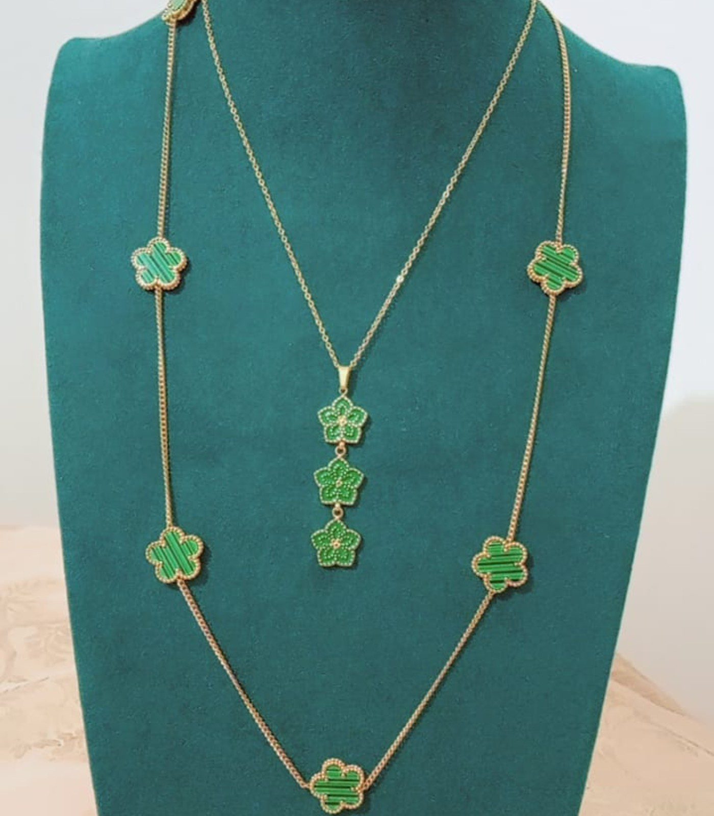 Sautoir à plusieurs trèfles vert en acier inoxydable